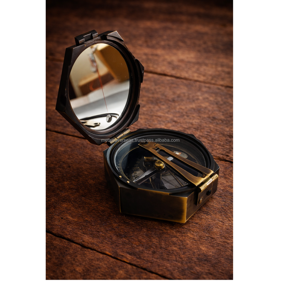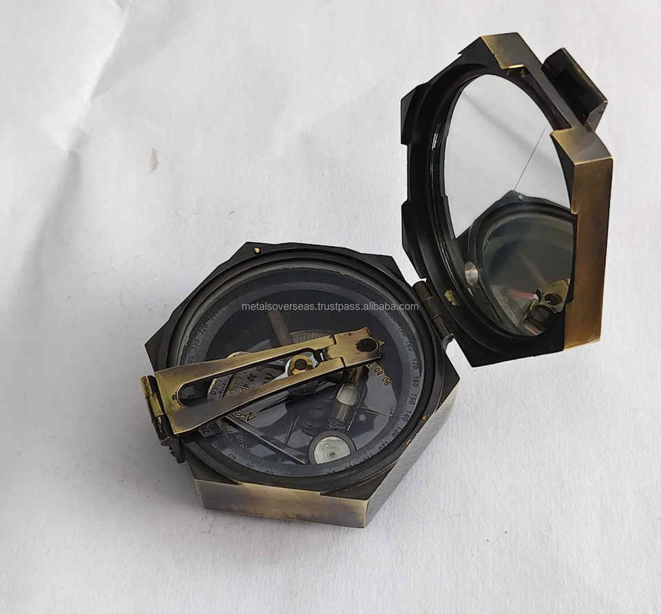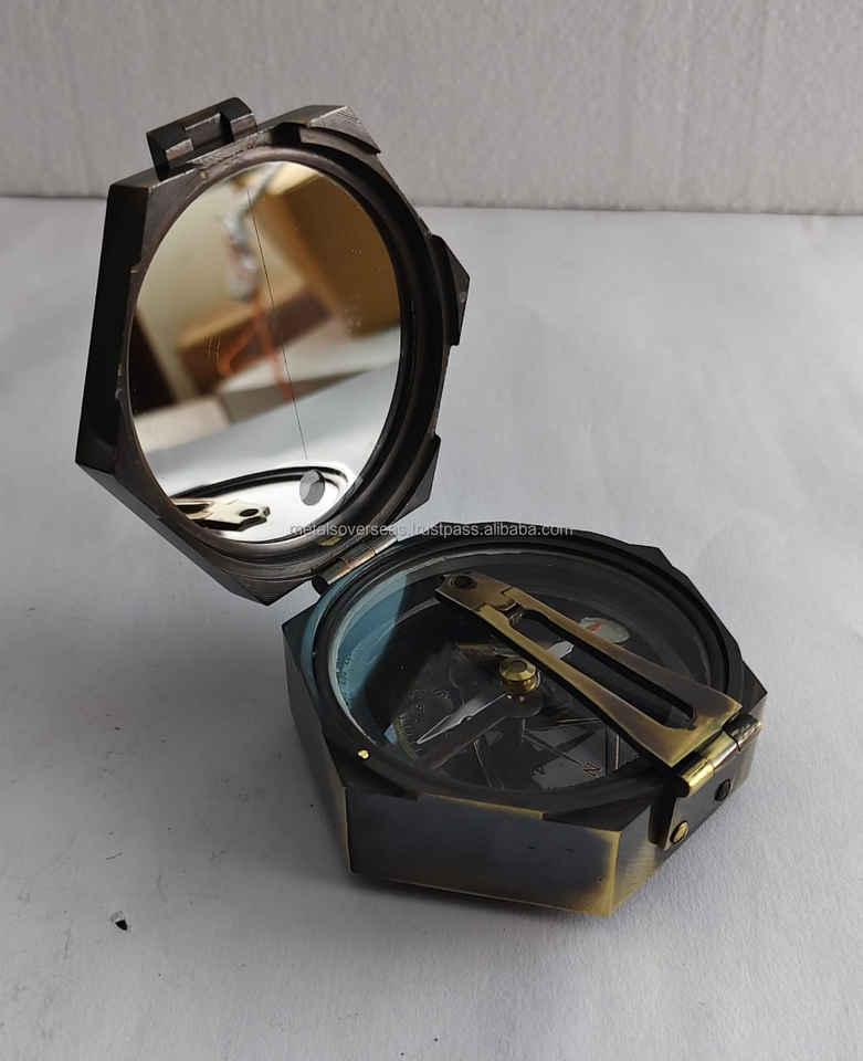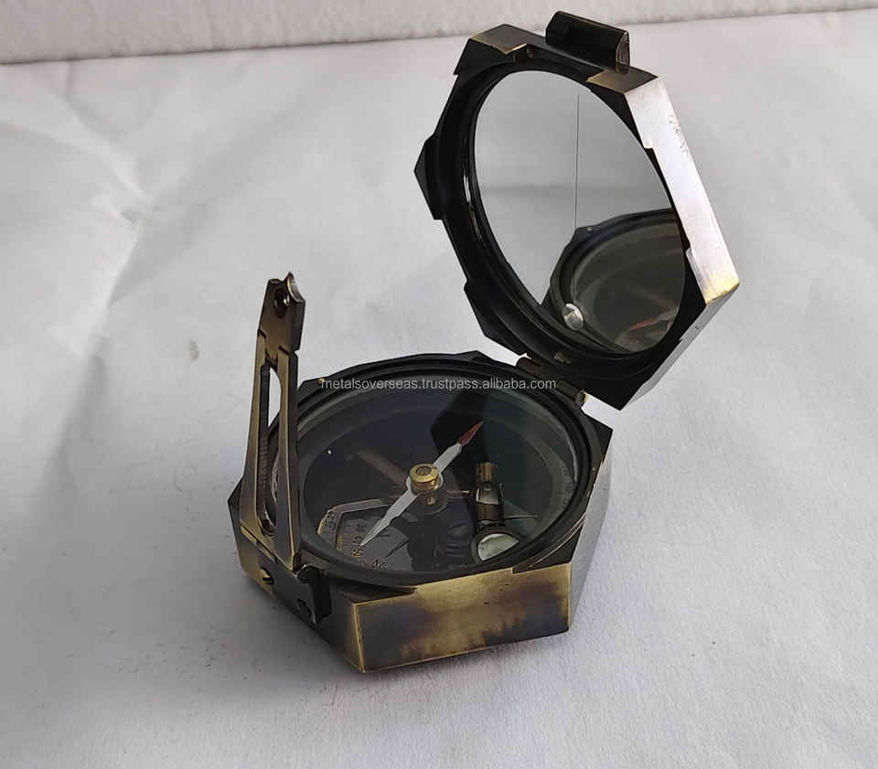 เข็มทิศทองเหลืองทรงแปดเหลี่ยมพร้อมเลนส์กระจกมองเห็นแบบวินเทจสำหรับการเดินเรือ
