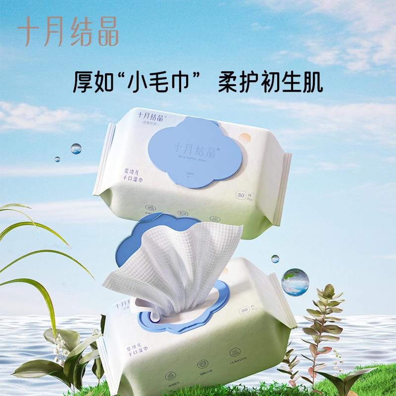 ตุลาคม คริสตัล เบบี้ ไวพส์ 80 แผ่น เนื้อสัมผัสเนียนนุ่มเหมือนไข่มุก ใช้ได้ทั้งมือและปาก แพ็คขนาดครอบครัว
