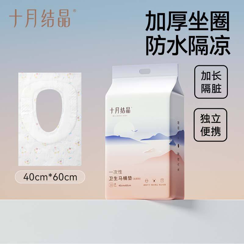 แผ่นรองนั่งชักโครกแบบใช้แล้วทิ้ง ตรา October Crystal ผลิตจากผ้าไม่ถักทอ ขนาด 40x60 ซม. ยาวพิเศษ หนา กันน้ำ สำหรับใช้ในบ้านและการเดินทาง