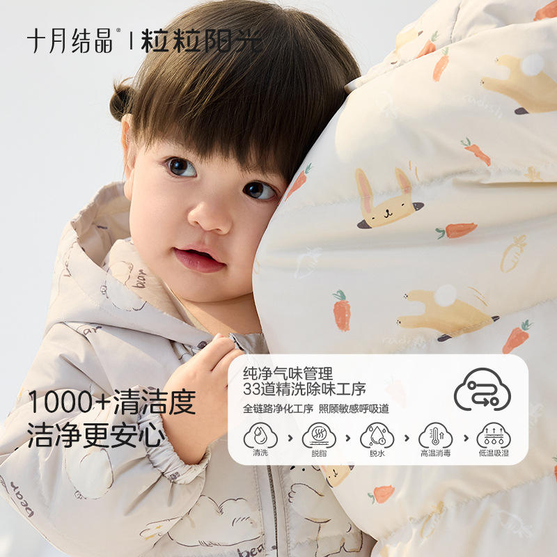 เสื้อแจ็คเก็ตเด็กแบบคริสตัลไลน์สำหรับเดือนตุลาคม ชุดหมีเด็กอ่อนบุขนเป็ดขาว กันน้ำ อุ่นสบาย เหมาะสำหรับเด็กทั้งชายและหญิง