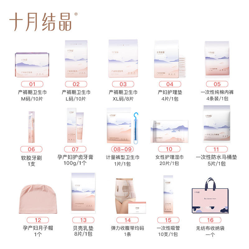 ชุดของขวัญสำหรับคุณแม่หลังคลอด 21 ชิ้น ชุดอุปกรณ์สำหรับคุณแม่และลูกน้อย สำหรับเข้าโรงพยาบาล ประจำเดือนตุลาคม