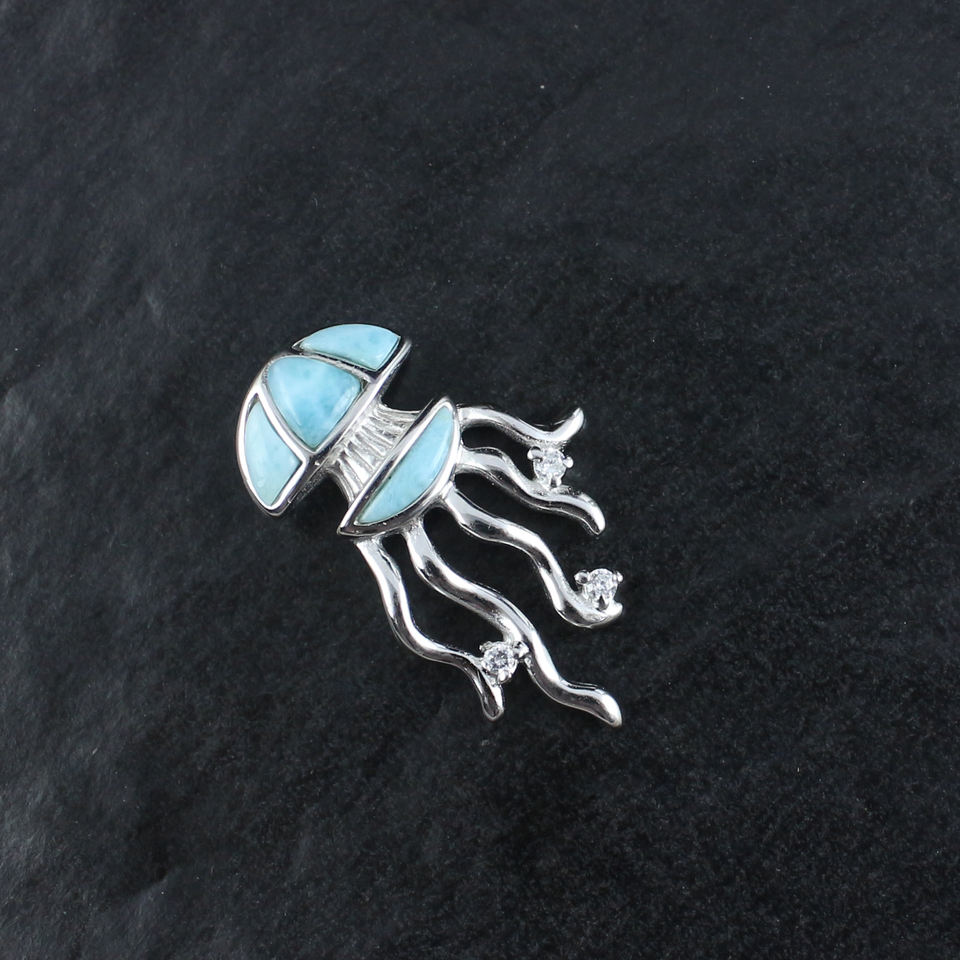 Larimar ปลาหมึกยักษ์925เครื่องประดับเงินสเตอร์ลิงชุบโรเดียมรูปสัตว์ทะเลจี้แบบมีธีม