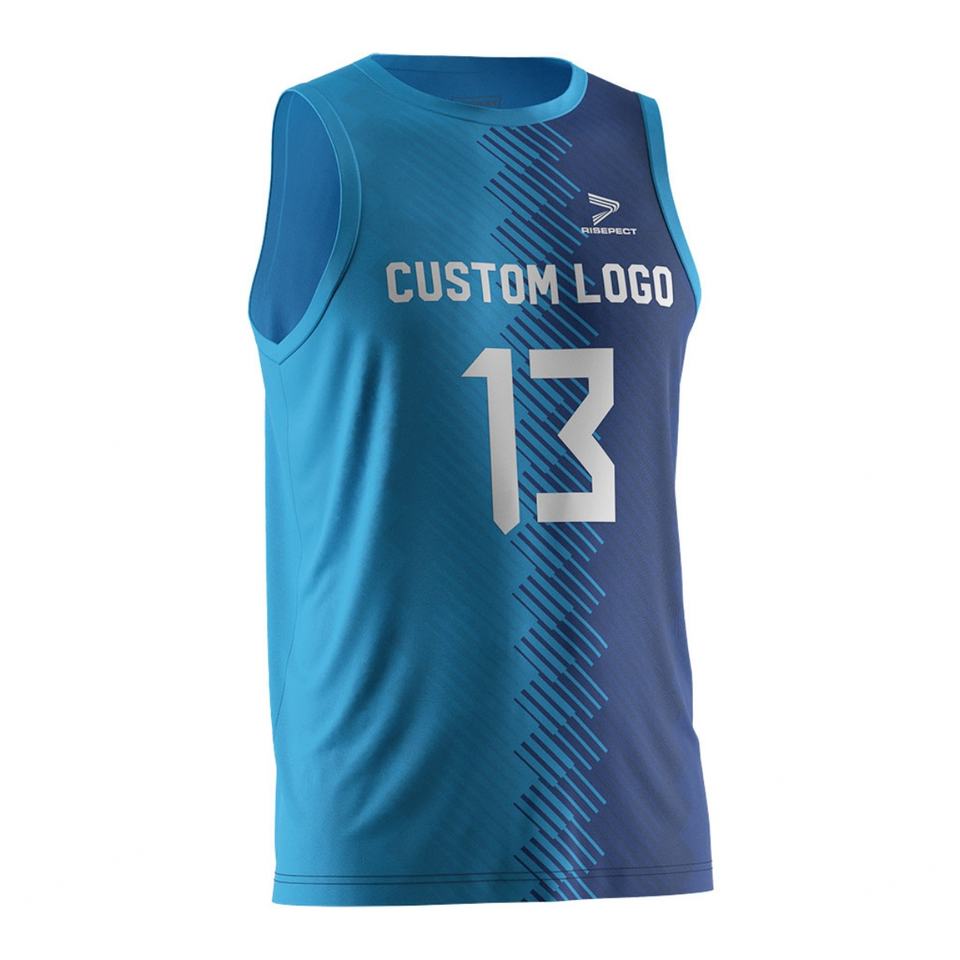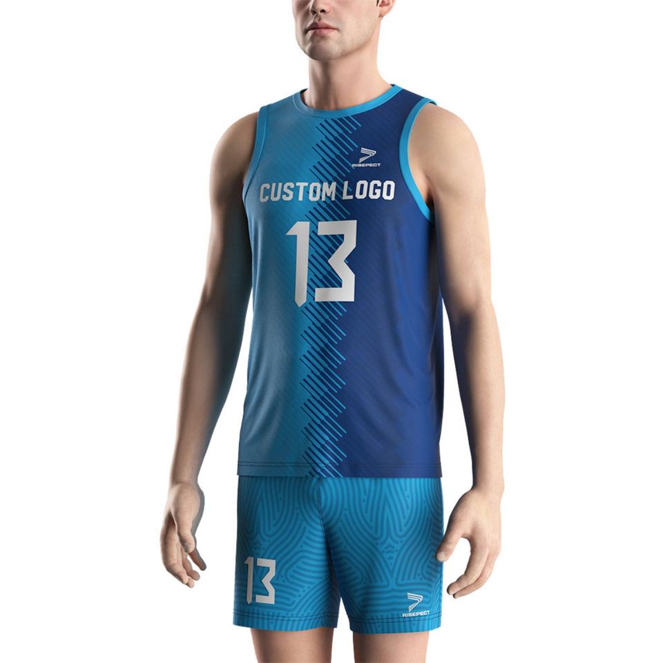 เสื้อกีฬาผู้ชาย Odm Blue Printing แห้งเร็ว เสื้อวอลเลย์บอลแขนกุด ชุดทีมราคาประหยัด