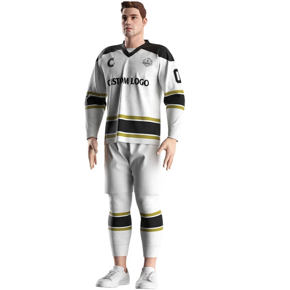 เสื้อฮอกกี้น้ำแข็งแบบสปอร์ตคอวี ปักลายทีม Odm Printing ชุดยูนิฟอร์มสำหรับกีฬาฮอกกี้น้ำแข็ง