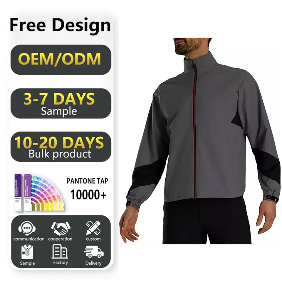 เสื้อกันลมสำหรับผู้ชายผ้าซอฟต์เชลล์ประสิทธิภาพสูงย้อนยุคคลาสสิกแบบกำหนดเอง OEM พร้อมคอตั้งสำหรับฤดูใบไม้ผลิ
