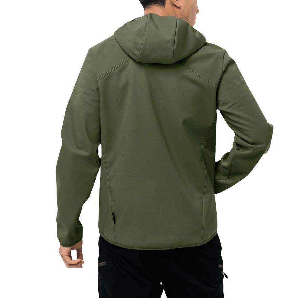 เสื้อแจ็คเก็ตผู้ชายแบบมีฮู้ดลายพราง OEM ผ้า softshell กันน้ำ กันลม ระบายอากาศได้ดี คุณภาพสูง สำหรับกิจกรรมกลางแจ้ง ฤดูหนาว สตรีทแวร์ โลโก้ด้านหน้า