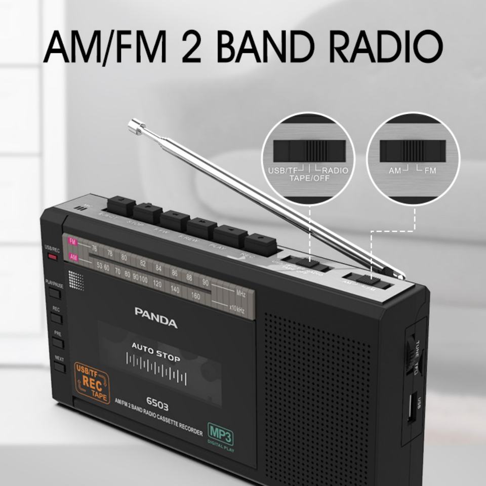 Classic Panda Portable Cassette Player AM/FM Radio Cassette Recorder USB/SD Card MP3 Support Customizable Color Auto Reverse