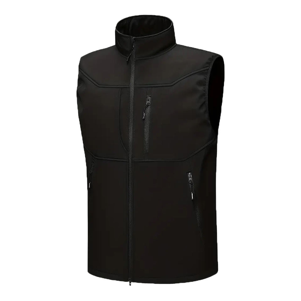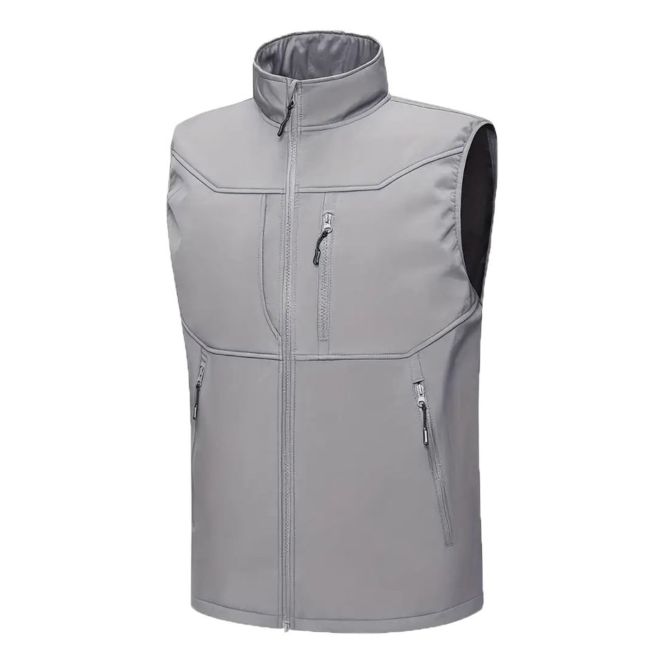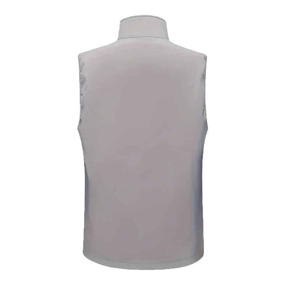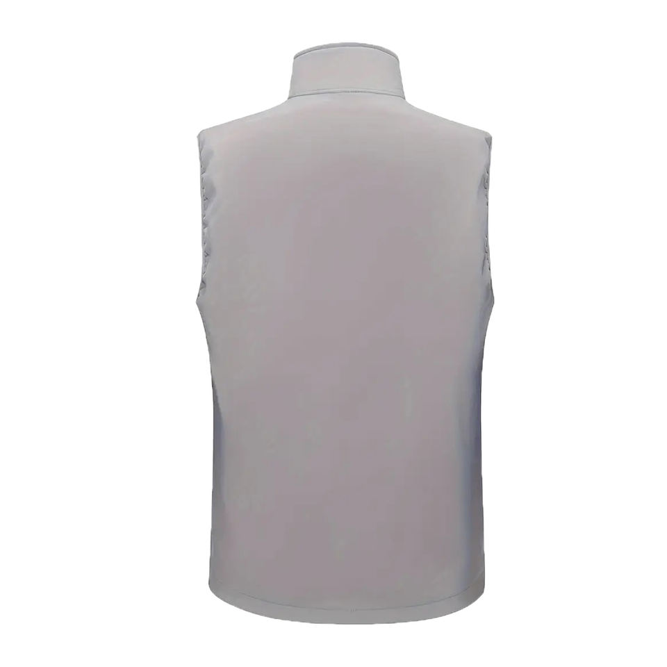 เสื้อกั๊กพัฟเฟอร์ผ้าแคนวาสเคลือบ OEM แบบไม่มีแขน สกรีนโลโก้ด้านหน้าตามสั่ง ผลิตจากโพลีเอสเตอร์ สำหรับฤดูใบไม้ผลิ ผู้ชาย ผู้หญิง