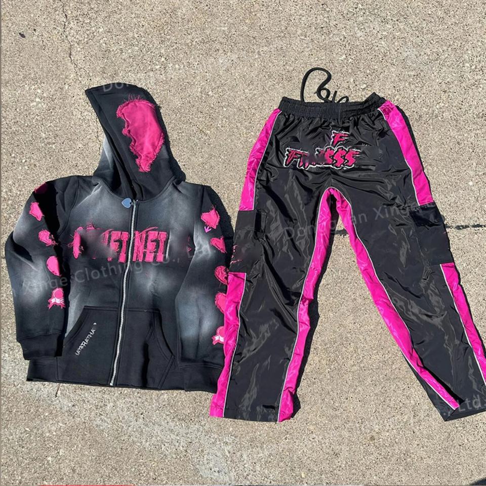 ชุดเซ็ตเสื้อและกางเกงวอร์มทรงขาบาน ผ้าโพลีเอสเตอร์/คอตตอน น้ำหนักเบา กันลม ระบายอากาศได้ดี สำหรับฤดูหนาว ไซส์ใหญ่พิเศษ แบบสั่งทำ OEM สำหรับทั้งชายและหญิง