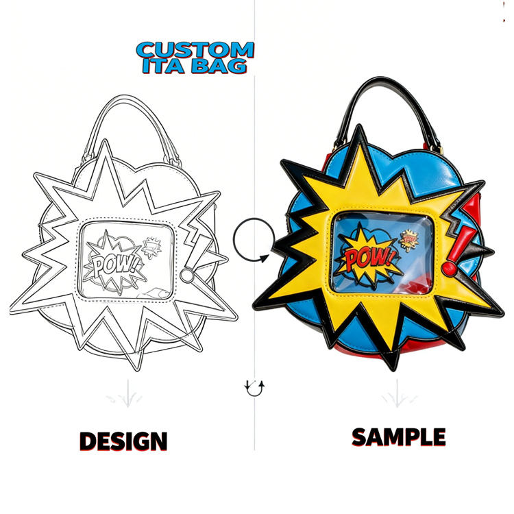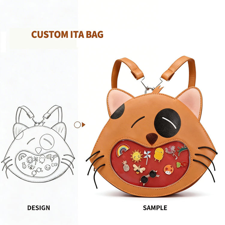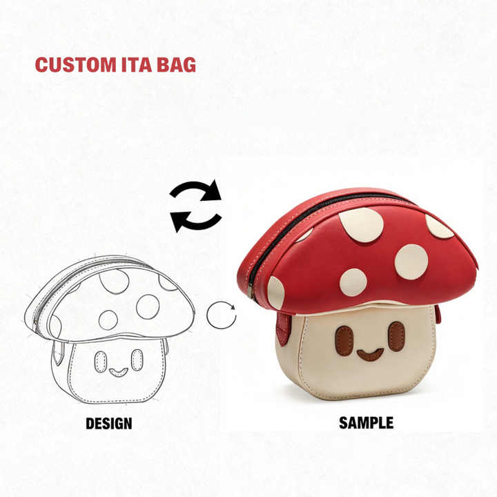 กระเป๋า Ita รูปเห็ดน่ารักแบบสั่งทำ OEM ลายหน้ายิ้ม พร้อมเข็มกลัดอนิเมะสำหรับโชว์ กระเป๋าสะพายข้างขนาดเล็กน่ารัก วัสดุ PVC