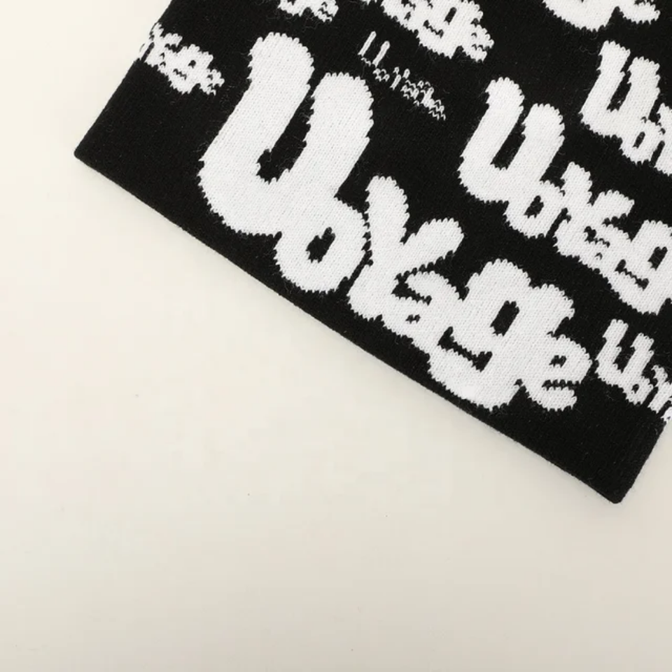 OEM หมวกบีนนี่ถักสำหรับทั้งชายและหญิง, หมวกอะคริลิคถักปักโลโก้ทันสมัยสีดำสไตล์ฮิปฮอปแบบนุ่มสำหรับเดินทาง