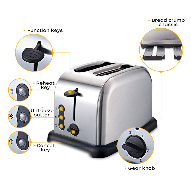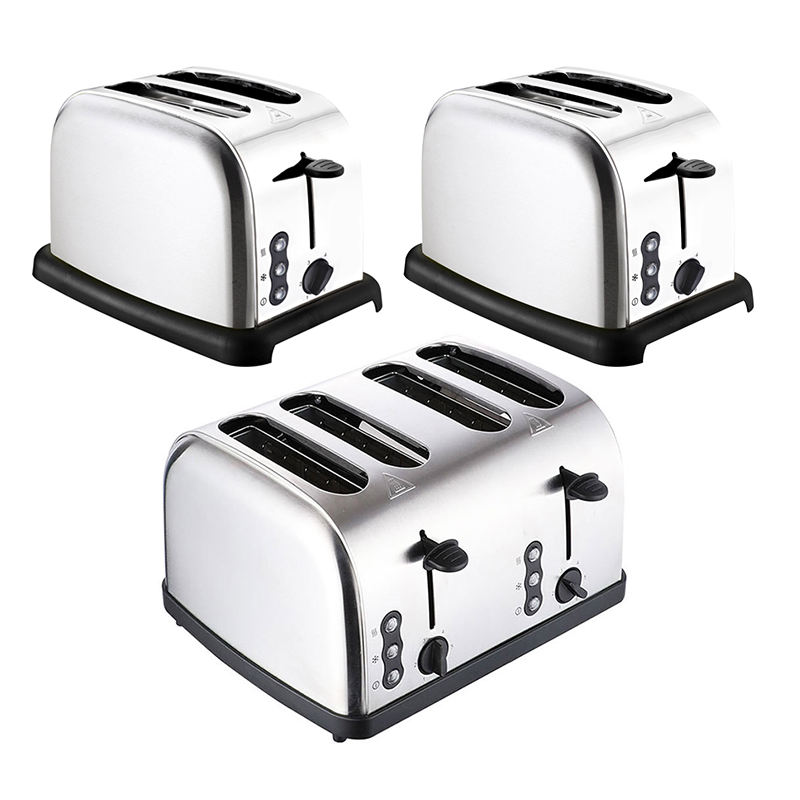 เครื่องปิ้งขนมปังไฟฟ้าแบบกำหนดโลโก้ OEM 120V 220V 240V สำหรับขนมปัง 4 แผ่น ทรงยาวเพรียวบาง ทำจากสแตนเลส สำหรับเบเกิล