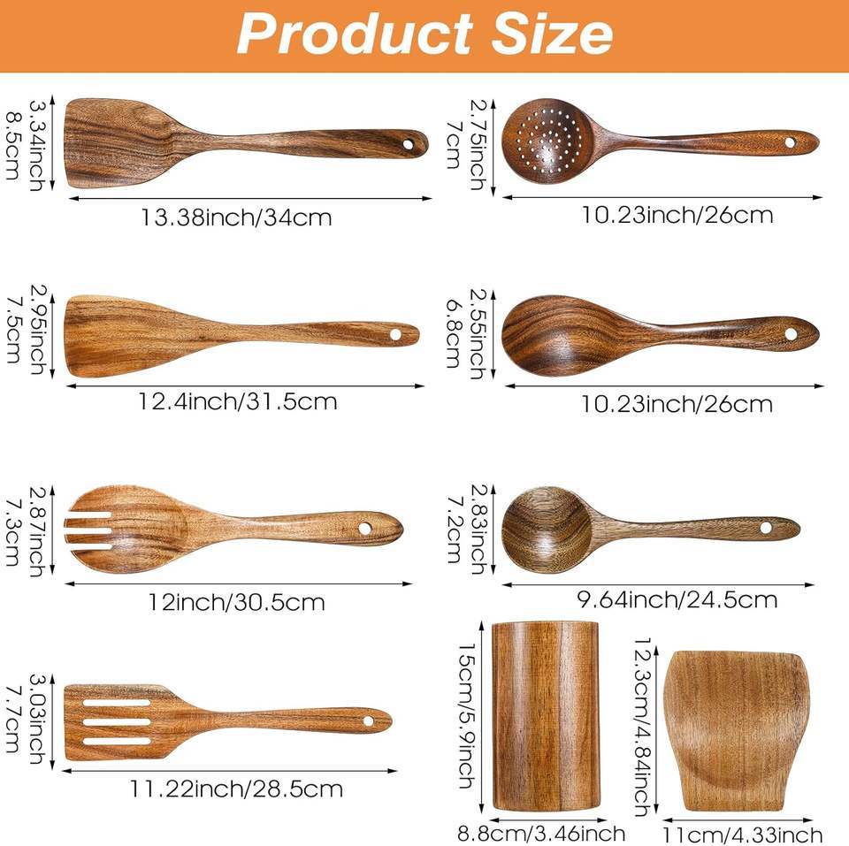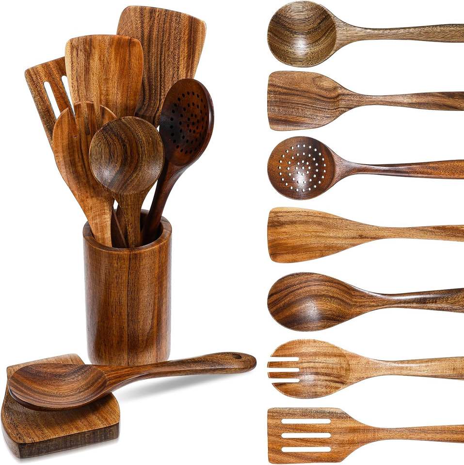 ชุดเครื่องครัวไม้สักธรรมชาติ9ชิ้นเครื่องใช้ในครัวทำโลโก้ออกแบบได้ตามต้องการ