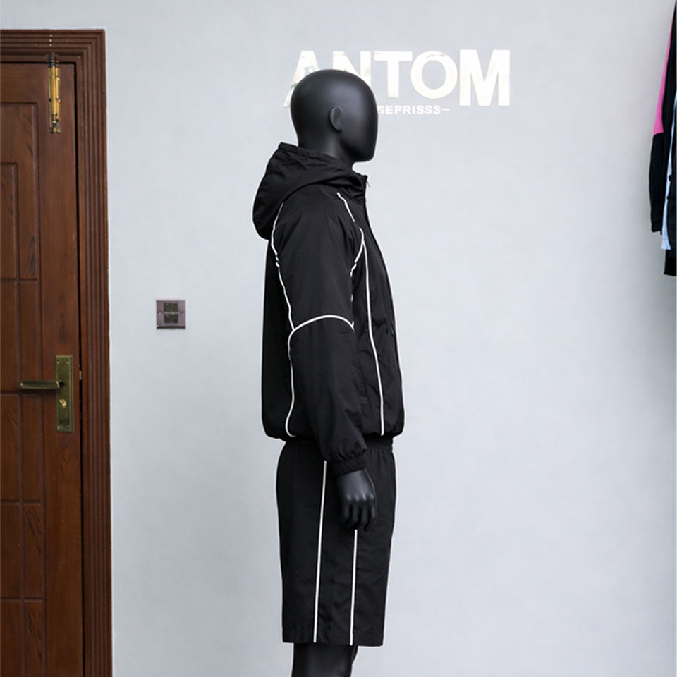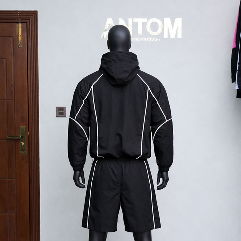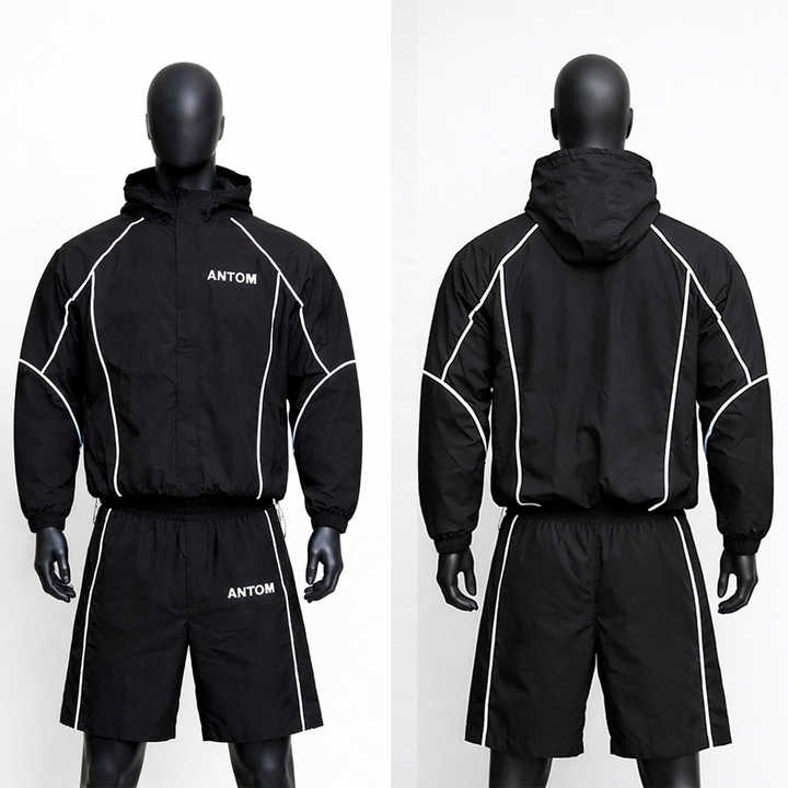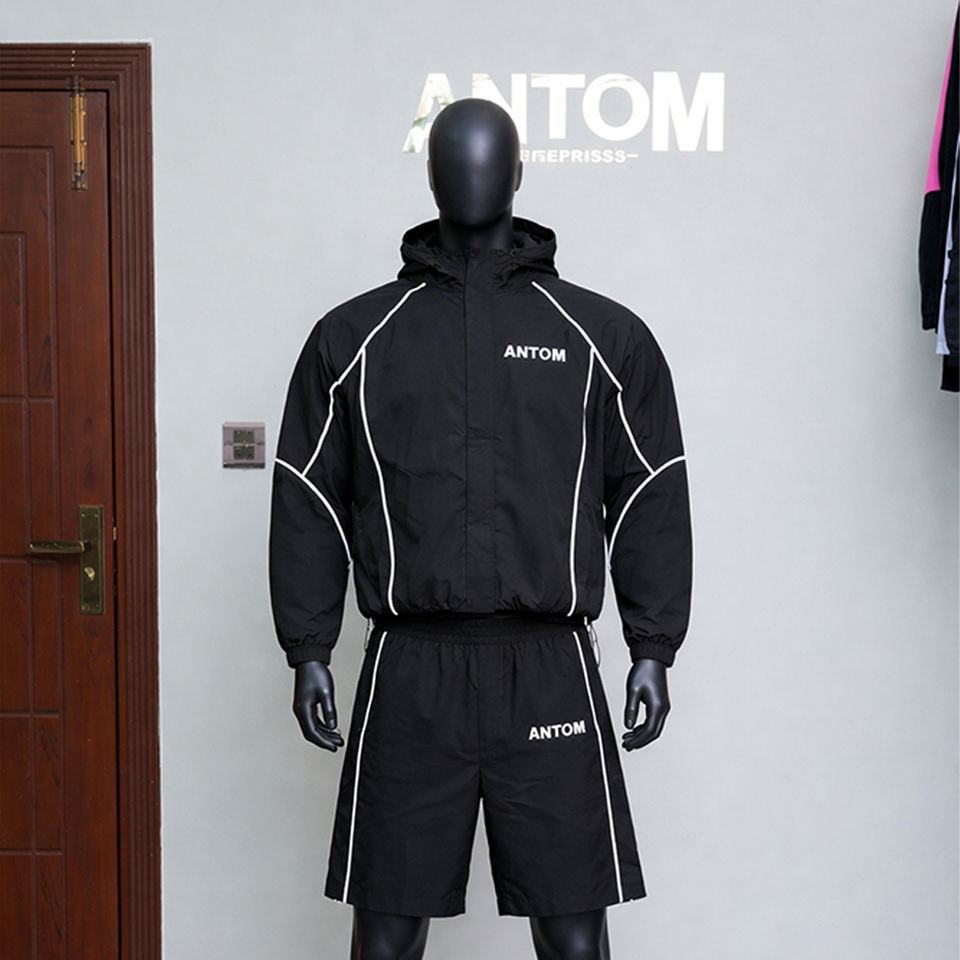 ชุดเซ็ตเสื้อฮู้ดดี้และแจ็คเก็ต กางเกงขาสั้น แบรนด์ OEM รับทำโลโก้ตามสั่ง ผลิตจำนวนมาก สไตล์ลำลอง สตรีทแวร์ ผ้าโพลีเอสเตอร์ ไนลอน ชุดวอร์มกันลม สำหรับผู้ชาย