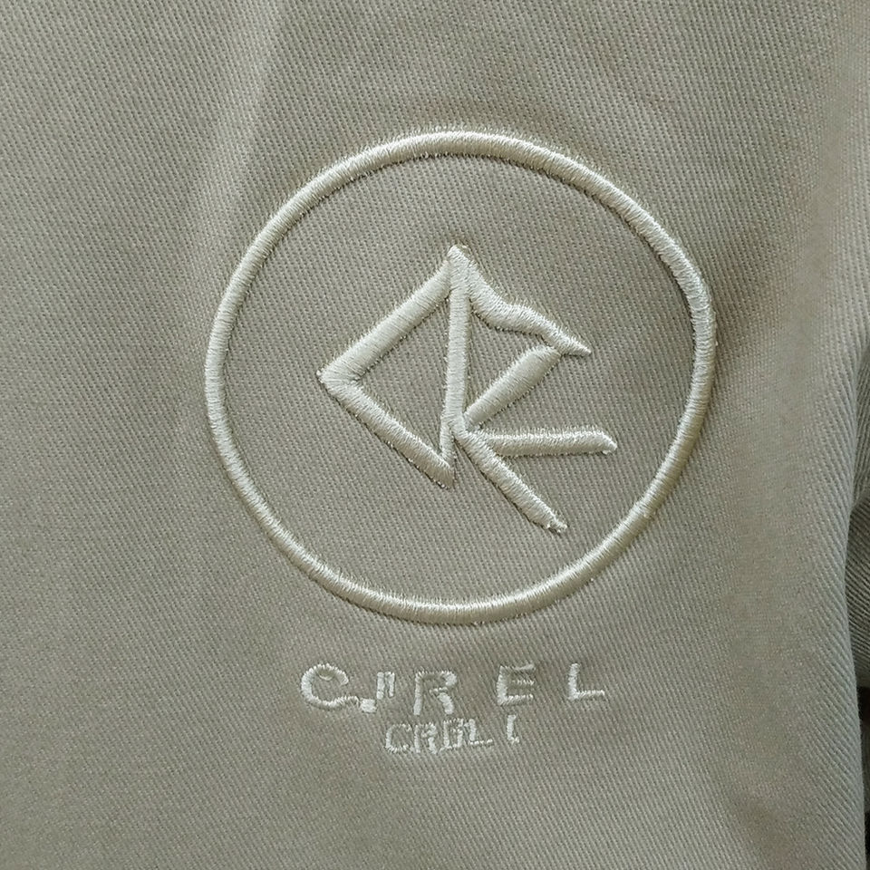 ชุดแจ็คเก็ตทำงานผ้าทวิลล์คอตตอนทรงหลวมสำหรับผู้ชาย พร้อมโลโก้แบบกำหนดเองของ OEM แจ็คเก็ตแบบมีซิปสองกระเป๋า พร้อมกางเกงคาร์โก้สำหรับผู้ชาย