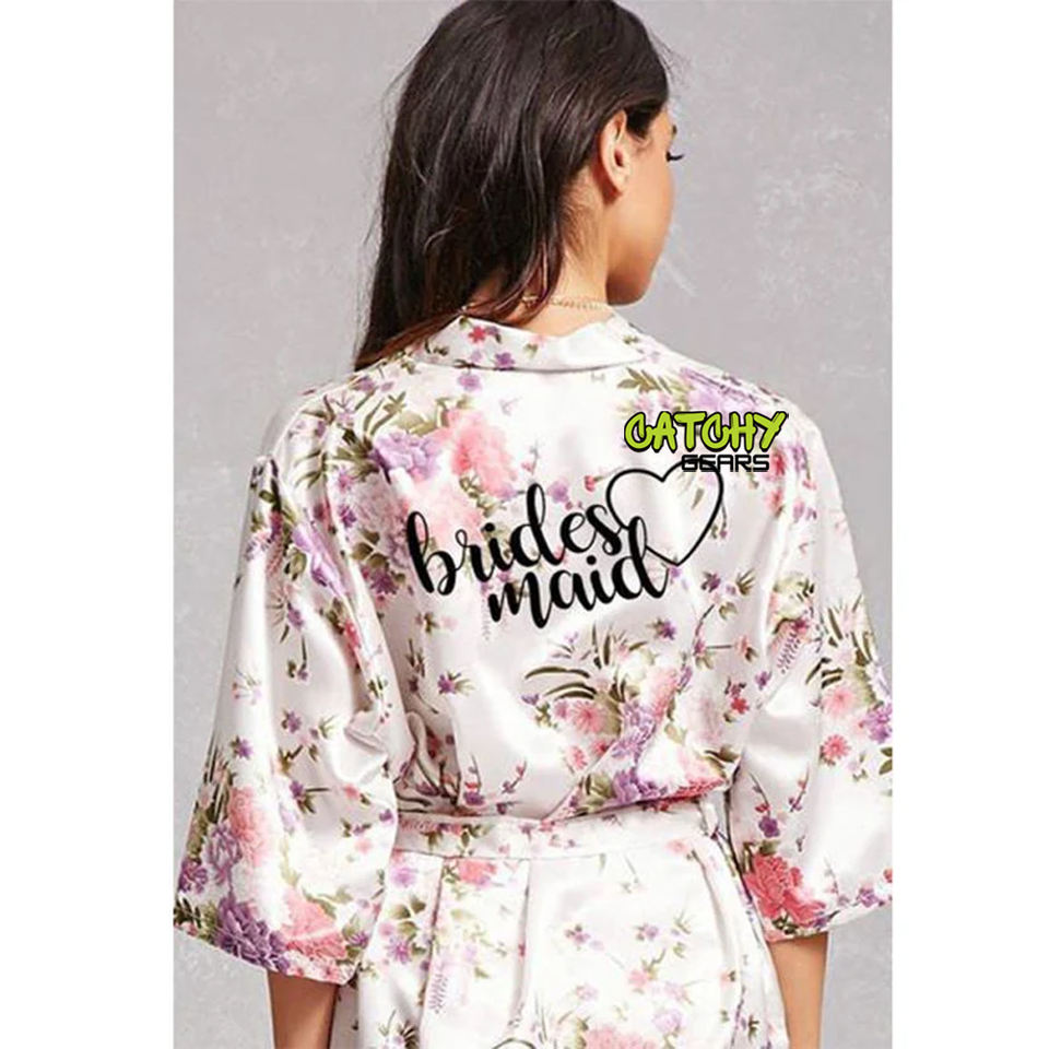 เสื้อคลุมกิโมโนผ้าไหมผ้าซาตินสำหรับผู้หญิงเสื้อคลุมเจ้าสาวสำหรับงานปาร์ตี้งานแต่งงานงานแต่งโลโก้ตามสั่ง