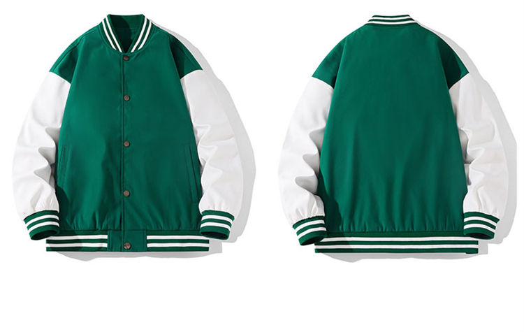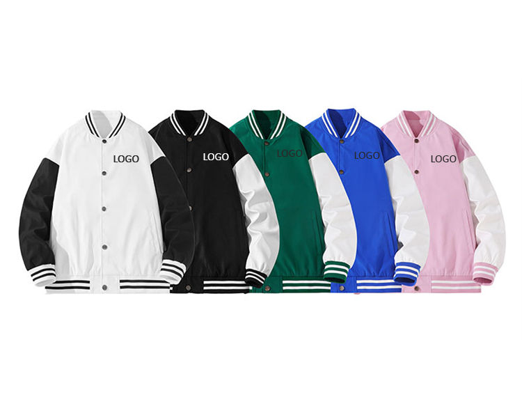 แจ็กเก็ตเบสบอลลายทรักเก็ตทีมเบสบอลสีพื้นไม่เปื้อนสำหรับใส่บนท้องถนนงาน OEM กำหนดเองได้เองสำหรับทุกเพศเสื้อแจ็คเก็ตทีมตัวแทนเปื้อนสำหรับแบรนด์ของคุณ