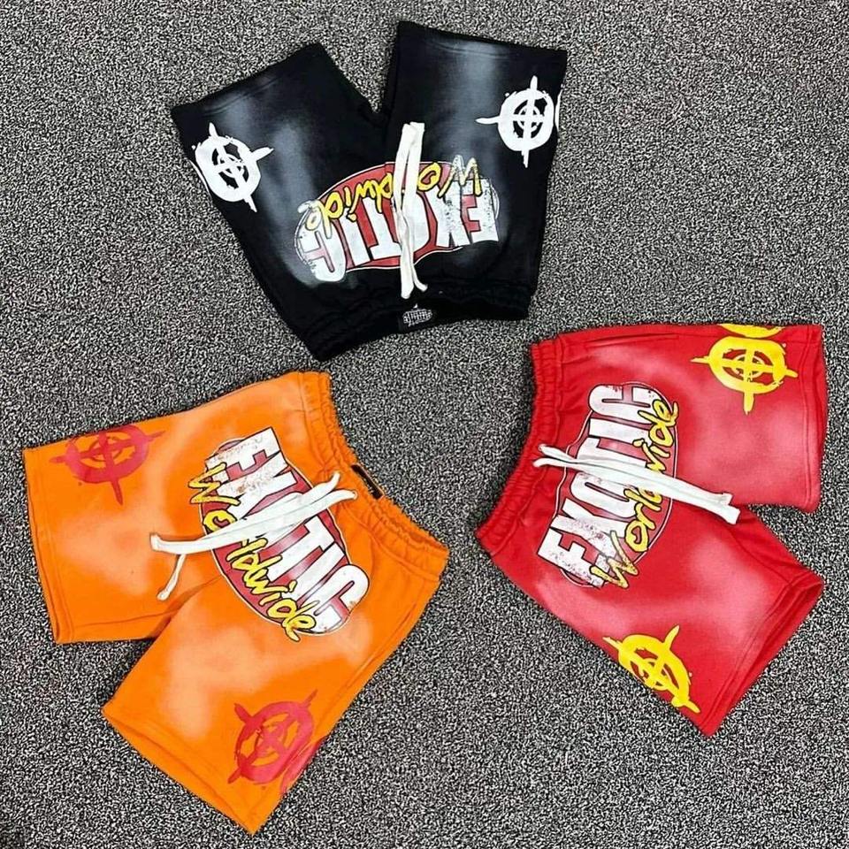 กางเกงขาสั้นสำหรับผู้ชายกางเกงวิ่งกันหนาวสีพื้นพิมพ์ลายโลโก้สำหรับฤดูร้อนเสื้อผ้าแนวสตรีท