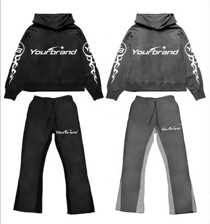 ชุดเซ็ตสตรีทแวร์สั่งทำแบบ OEM สำหรับผู้หญิง กางเกงทรงบานฟอกสีสไตล์วินเทจ ผ้าฝ้าย 100% เสื้อครอปสั้นลายตัวอักษร สำหรับทุกเพศ