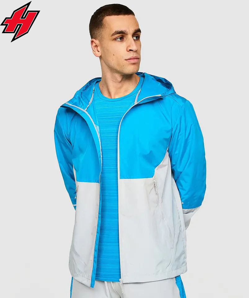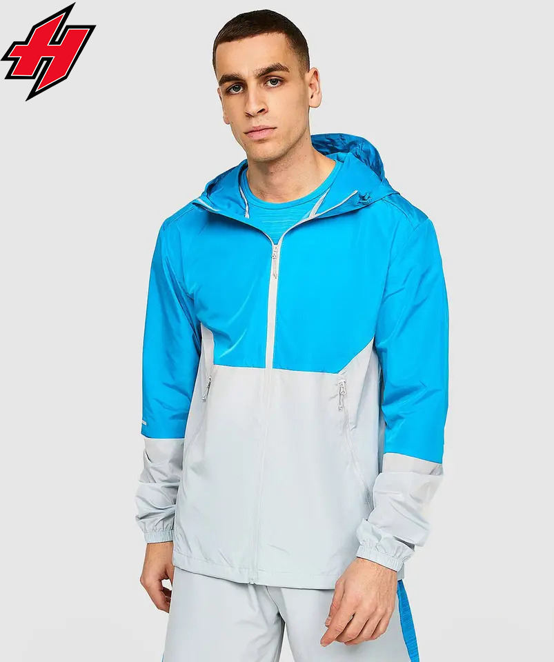 ชุดกันลมชุดวอร์มมีซิปสำหรับผู้ชายชุดวอร์มมีฮู้ดชุดวอร์มสองชิ้นแบบกำหนดเองชุดวิ่ง