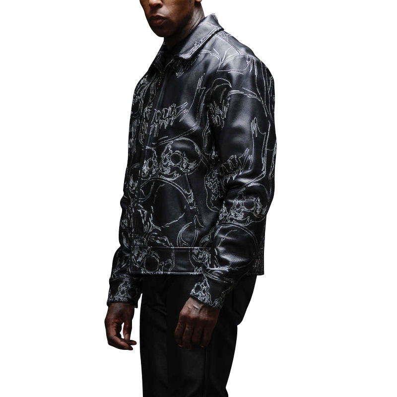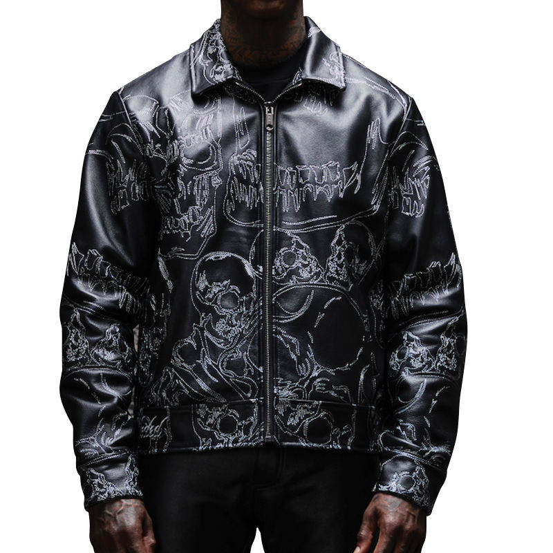 แจ็คเก็ตหนังทรงบ็อกซี่บุผ้าฝ้ายปักลายเต็มตัวแบบซิปสั่งทำพิเศษสำหรับผู้ชาย สีดำ ไซส์ใหญ่พิเศษ เหมาะสำหรับฤดูหนาว
