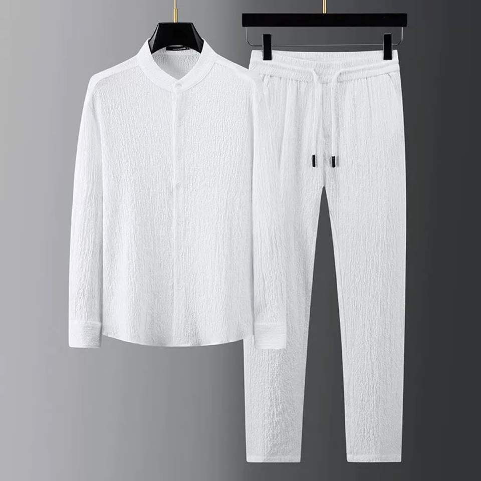 ชุดเสื้อกางเกงสำหรับผู้ชายเสื้อคอตั้งทรงกางเกงดีไซน์แบบพองใหม่สำหรับฤดูใบไม้ผลิและฤดูร้อนโลโก้ออกแบบได้ตามต้องการ