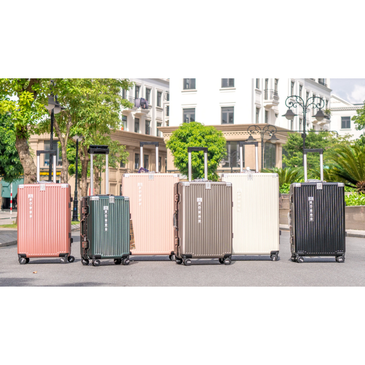 กระเป๋าเดินทางล้อลากเหล็กพร้อมล้อผลิตในเวียดนามกระเป๋าวัสดุ PC สำหรับการเดินทางกลางแจ้งงาน OEM ออกแบบได้ตามที่ต้องการ