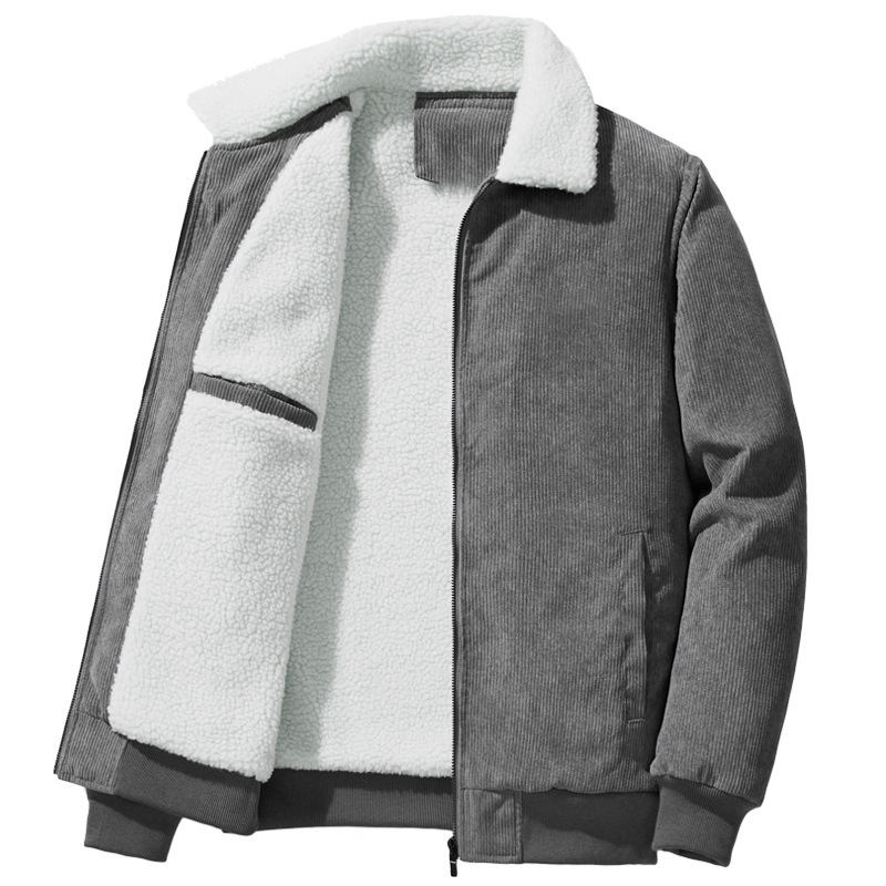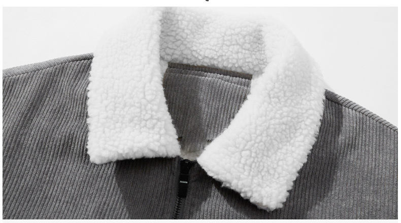 เสื้อแจ็คเก็ตคอตตอนบุใยฝ้ายแบบหนาสำหรับฤดูหนาว สไตล์ลำลอง แต่งฮู้ด คอตั้ง ผ้าคอร์ดูรอย หนังแท้ ออกแบบโลโก้ตามสั่ง OEM