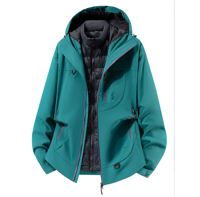 เสื้อแจ็คเก็ตผู้ชายแบบสามในหนึ่ง ถอดประกอบได้ กันลม กันหนาว สำหรับฤดูหนาว ออกแบบโลโก้ตามสั่ง OEM
