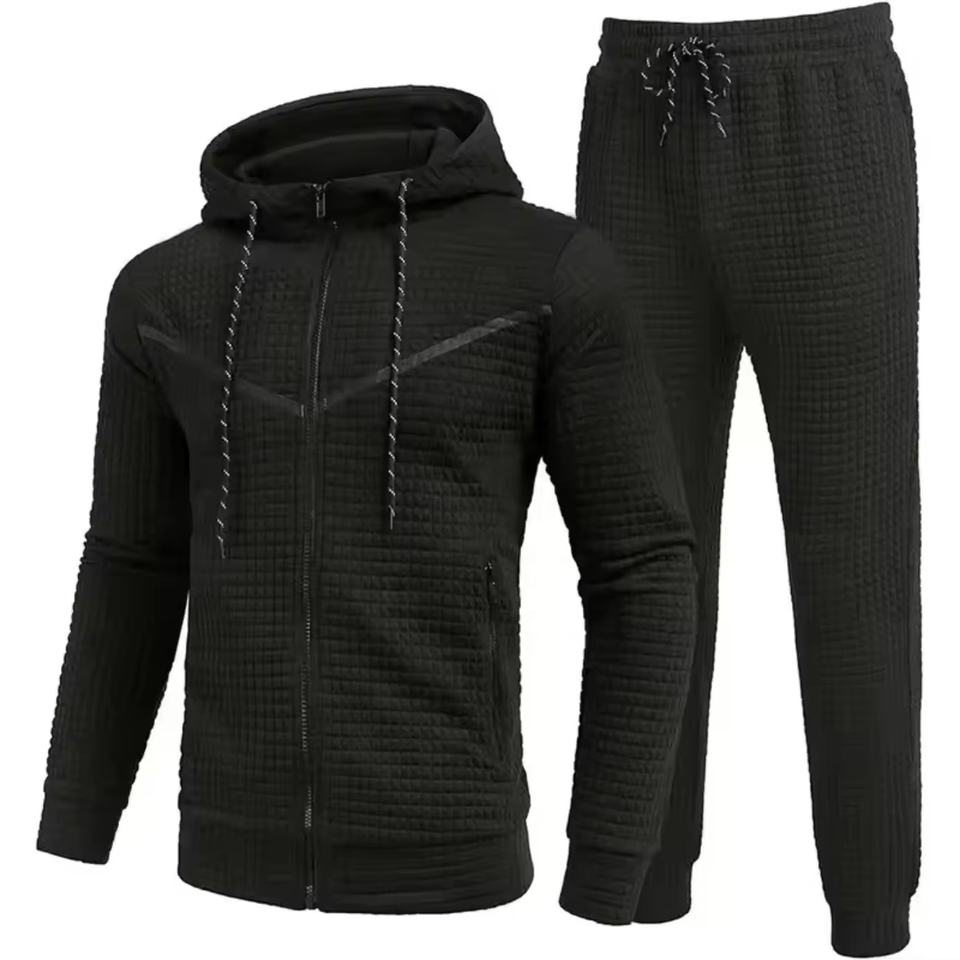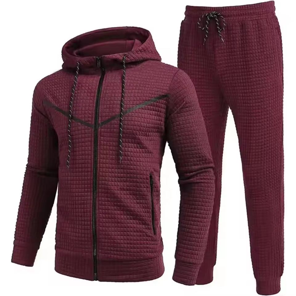 Oem Customized Logo Design Zipper Hooded Suit Men's Men's Fashion Sports Casual Waffle Tracksuit