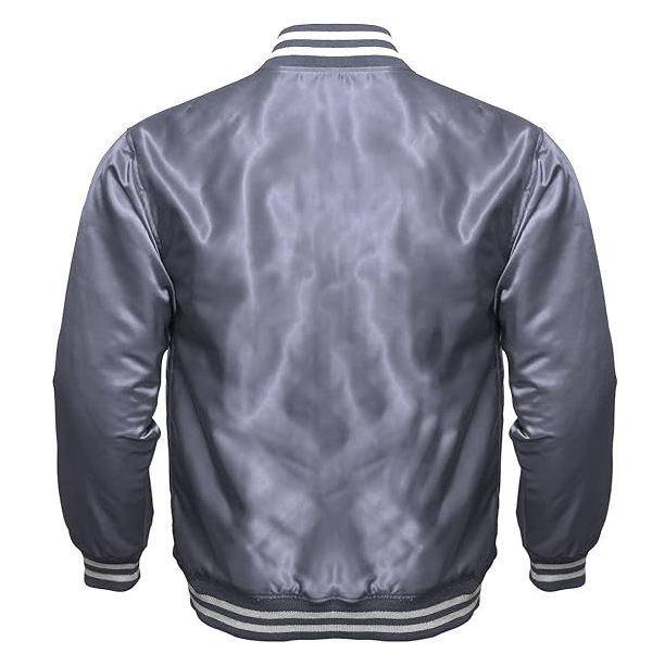 แจ็คเก็ตซาตินผู้ชายแบบกำหนดเอง OEM ปักลายปักแบบสตรีทดีไซน์ แจ็คเก็ตเบสบอลแบบวาร์ซิตี้