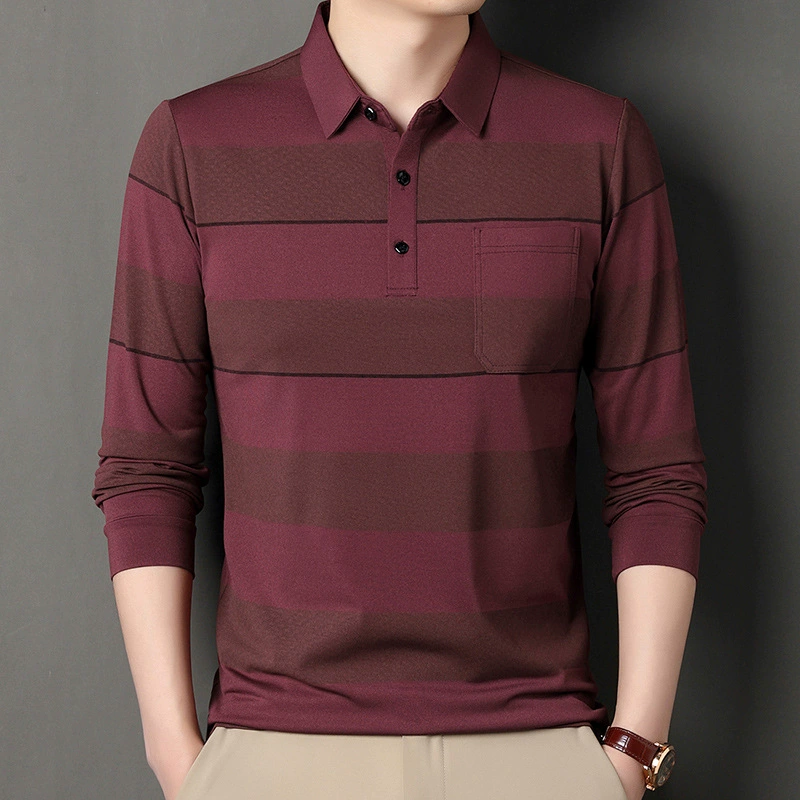 คลาสสิกของผู้ชายสำหรับเสื้อโปโลผ้าไหมปักลายแถบเดียวคุณภาพสูงและเสื้อยืดผ้าสแปนเด็กซ์ขนาดใหญ่พิเศษ