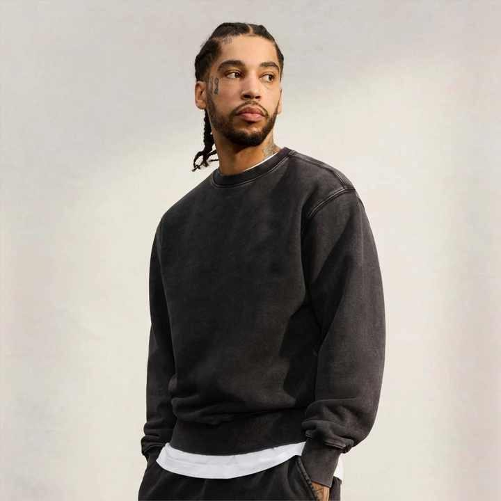 เสื้อสเวตเตอร์คอกลมสำหรับผู้ชายเสื้อสเวตเตอร์แขนยาวแบบสวมหัวโอเวอร์ไซส์ผ้านิ่มออกแบบได้ตามที่ต้องการ