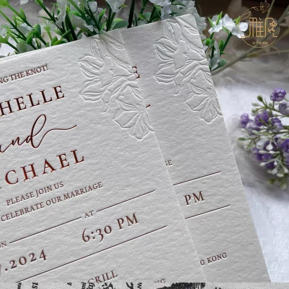 การ์ดเชิญงานแต่งงานแบบกำหนดเองได้ ราคาประหยัด หรูหรา พร้อมการพิมพ์กราเวียร์บนกระดาษอาร์ตเคลือบเงาและลายนูน