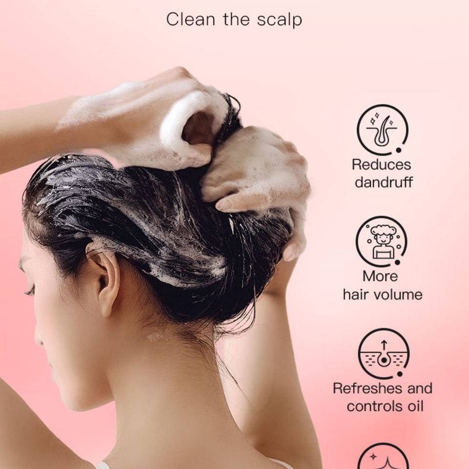 สครับขจัดสิ่งตกค้างบนเส้นผม ผลัดเซลล์ผิว ทำให้ผมเรียบลื่น ทำความสะอาดอย่างล้ำลึก สครับขจัดสิ่งสกปรกบนหนังศีรษะด้วยเกลือทะเลหิมาลัยสีชมพู แชมพูสครับสำหรับหนังศีรษะ แบรนด์ส่วนตัว