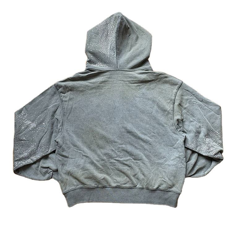 เสื้อฮู้ดซิปหนักแบบ OEM ผ้าเทอร์รี่คอตตอน 100% สไตล์สตรีทแวร์ ประดับคริสตัล สำหรับผู้ชาย