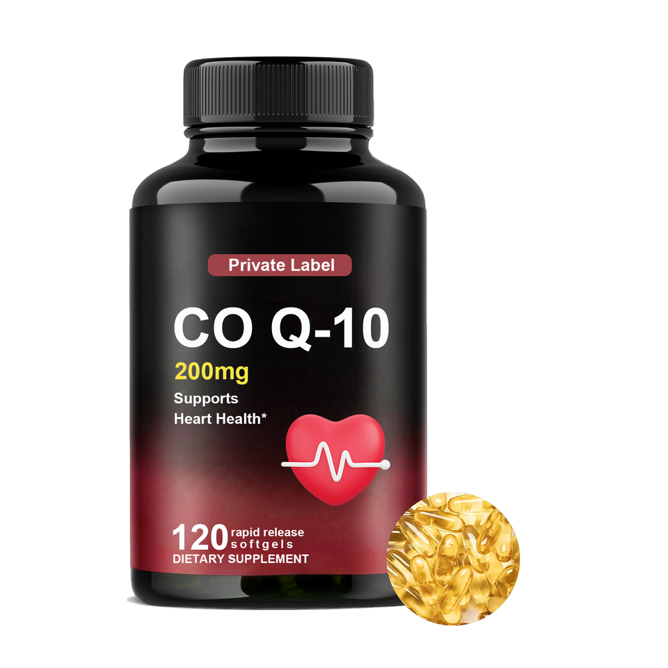 โออีเอ็มเจลนุ่ม200มก. Q10โคเอนไซม์เกรดอาหารเพื่อสุขภาพหัวใจพร้อมบรรจุภัณฑ์แบบกำหนดเอง