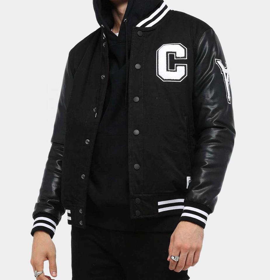แจ็คเก็ตเบสบอลแบบวาร์ซิตี้ผ้าแคนวาสสำหรับฤดูหนาว งานปักคุณภาพสูงแบบ OEM สำหรับทุกเพศ แบบสั่งทำพิเศษสำหรับนักศึกษา มีไซส์ใหญ่พิเศษ