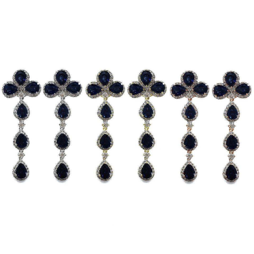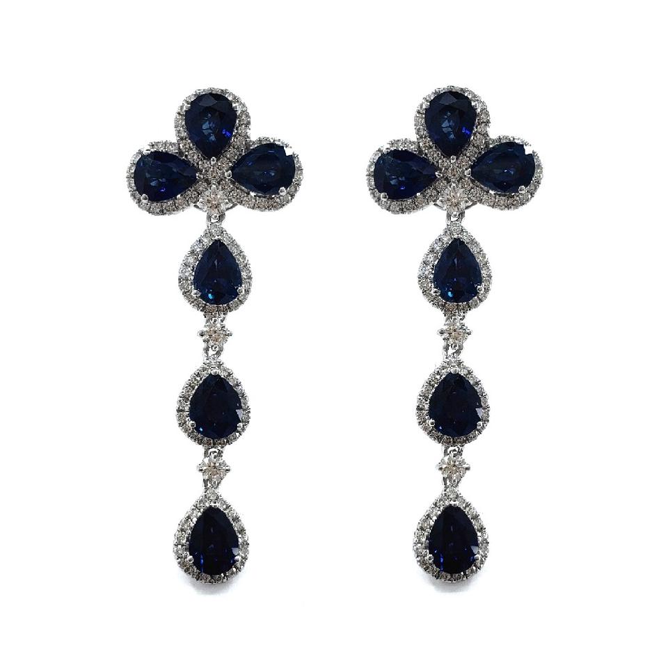 ต่างหูเพชรแท้ แซฟไฟร์ ทองคำขาว 18k แท้ คุณภาพสูง สำหรับผู้หญิง จาก Oem Jewellery
