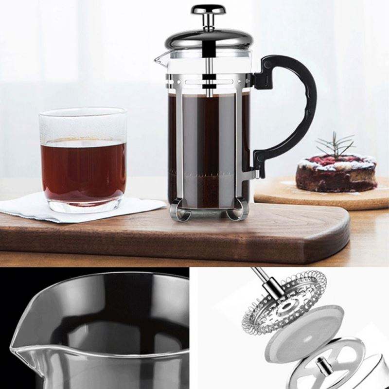เครื่องบดมือ + เฟรนช์เพรสสีเงิน