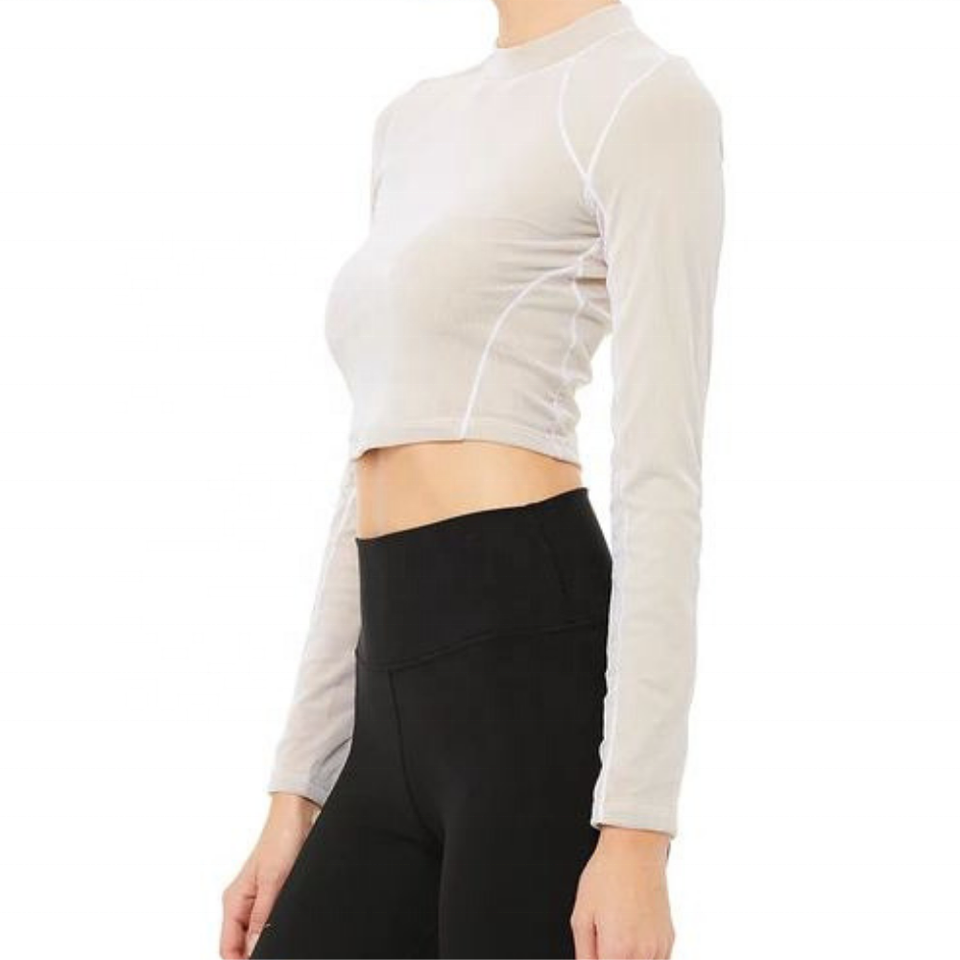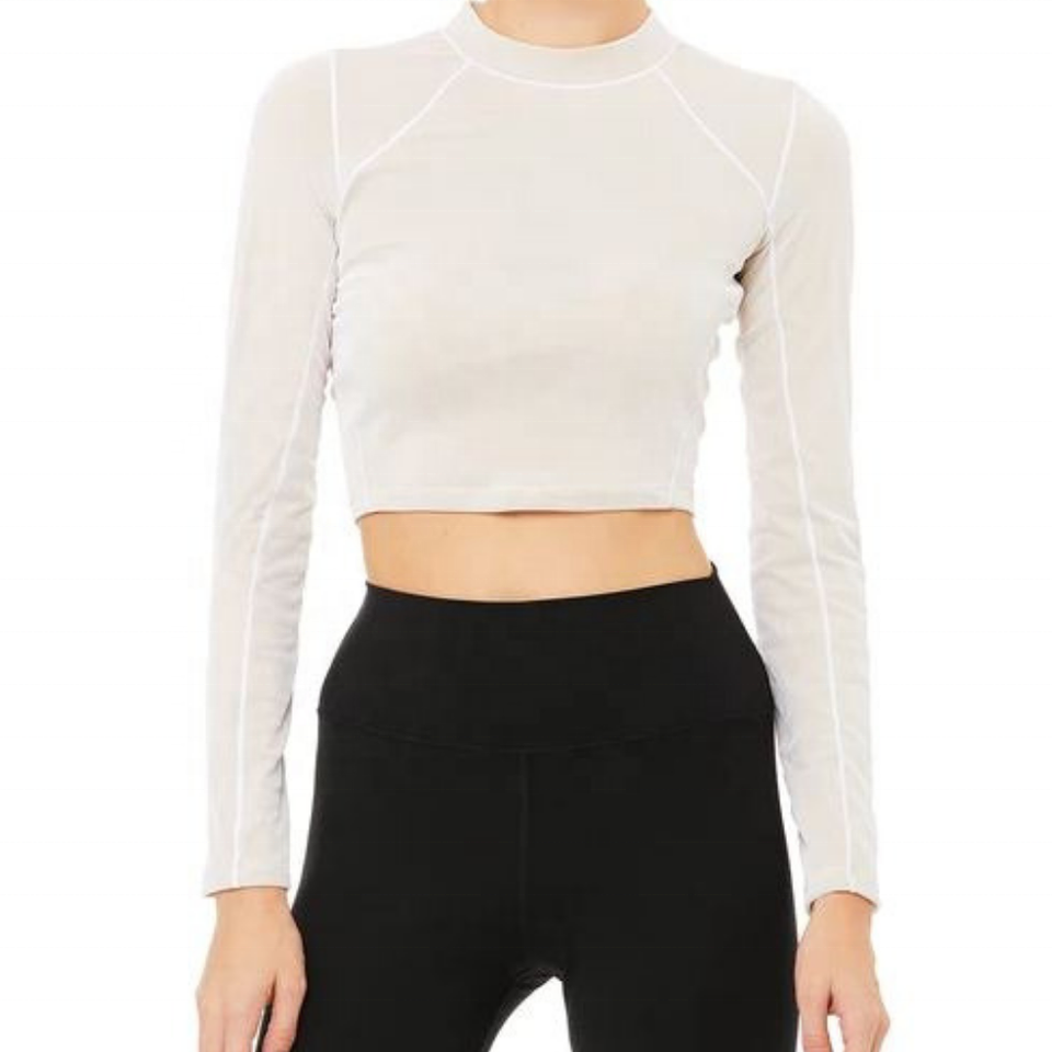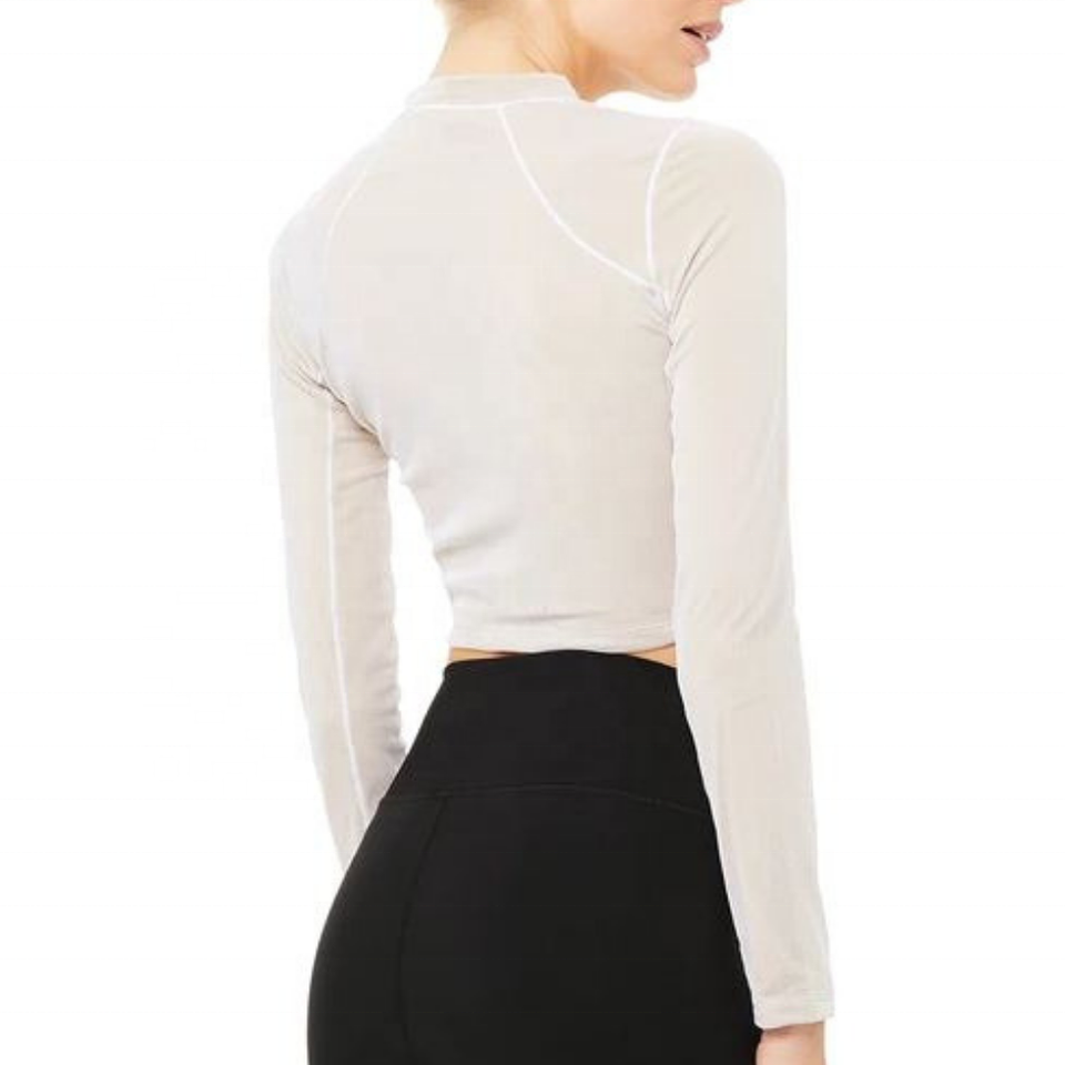 เสื้อครอปแขนยาวสำหรับผู้หญิงมองเห็นโลโก้ OEM