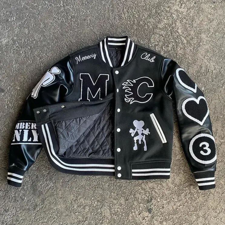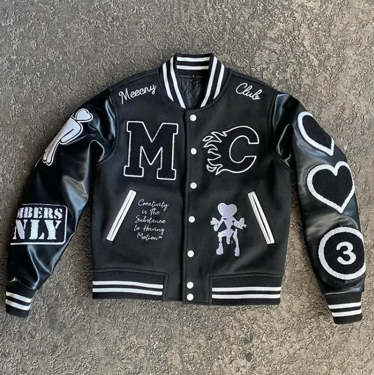 แจ็คเก็ตบอมเบอร์เลตเตอร์หนังทีมโรงเรียนสำหรับผู้ชายปักลายกำมะหยี่