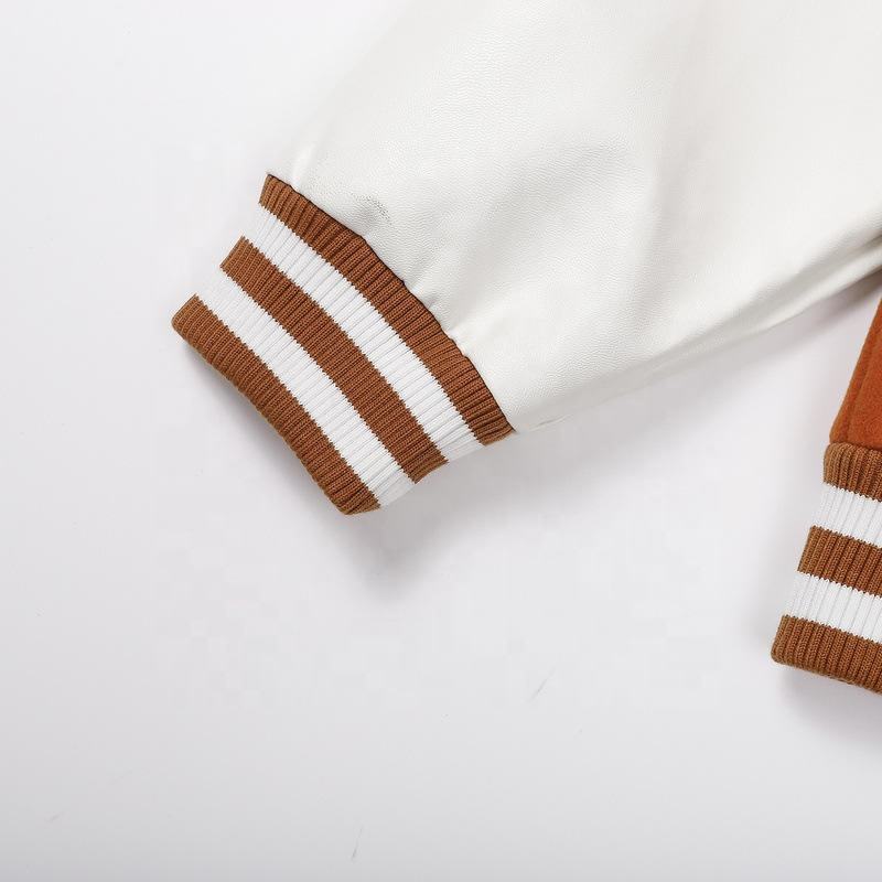 ผู้ผลิต OEM เสื้อแจ็คเก็ตเบสบอลบอมเบอร์แบบมีแขนหนังปักลายเชนิลคุณภาพสูงสำหรับผู้ชาย รับสั่งทำตามแบบ เสื้อแจ็คเก็ตฤดูหนาวสำหรับผู้ชาย