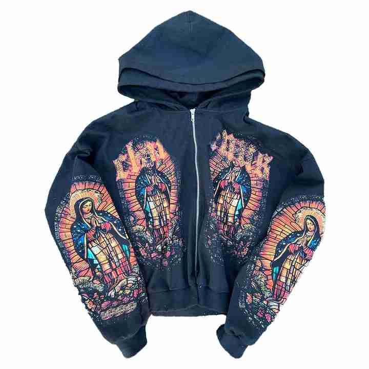 Oem Men 3d Print Full Zip Hoodie Custom Logo Embroidery French Terry Heavyweight Oversized 360gsm Full Zip up Hoodies