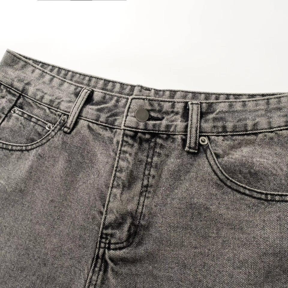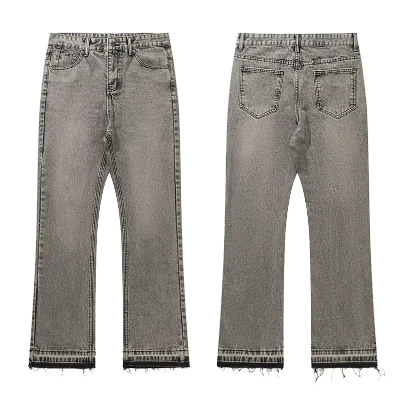 กางเกงยีนส์เดนิมทรงแบ็กกี้ขาบานสไตล์วินเทจสำหรับผู้ชาย รุ่นคลาสสิก สตรีทแวร์ ขอบดิบ เอวกลาง ระบายอากาศได้ดี