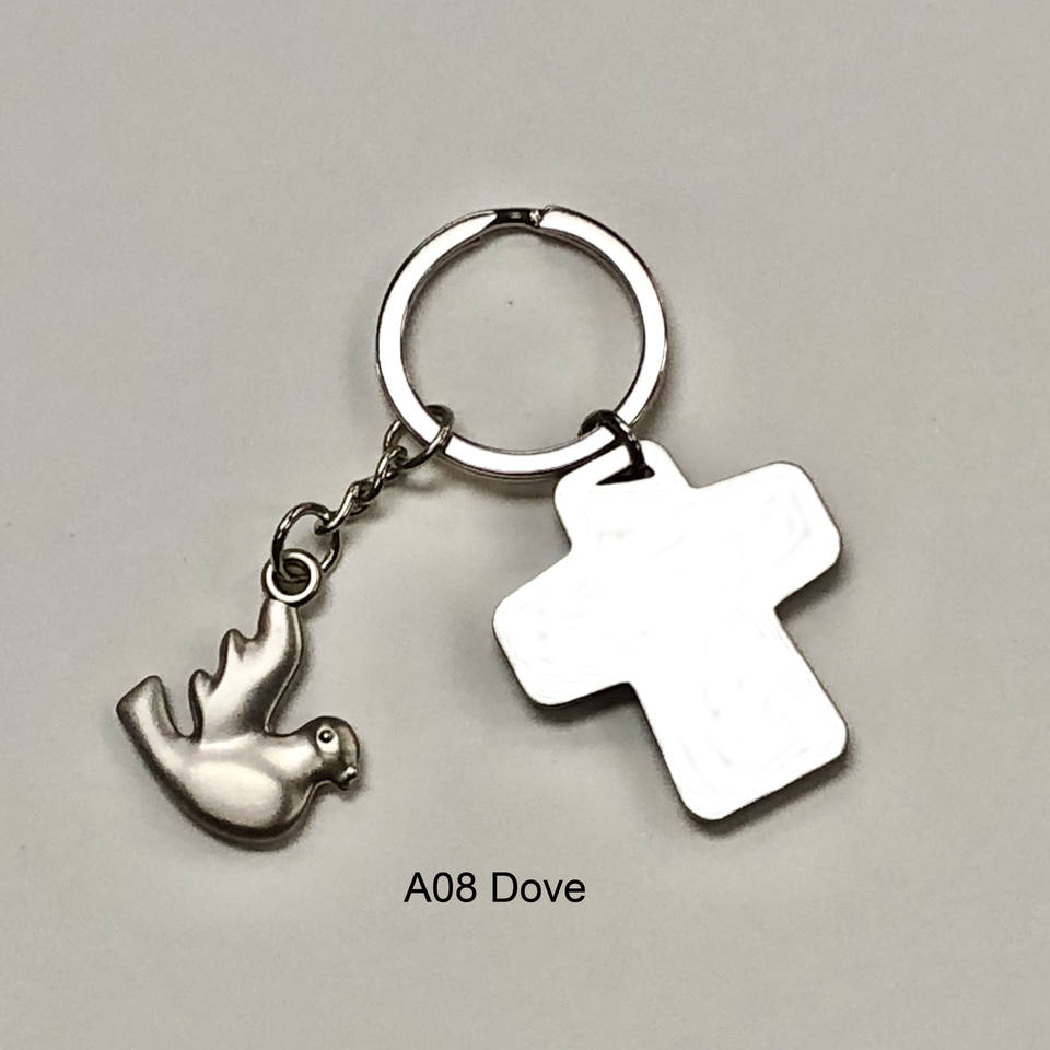 พวงกุญแจรูปนกพิราบกางเขนทำจากซิงค์อัลลอยสำหรับงานศิลปะที่เป็นเอกลักษณ์