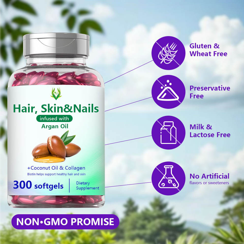 โอเอ็มน้ำมันมะพร้าวผสมคอลลาเจนที่มีไบโอตินช่วยบำรุงผิวกระจ่างใสเล็บแข็งแรงอาหารเสริมเพื่อความงามของเส้นผมเพื่อสุขภาพผม