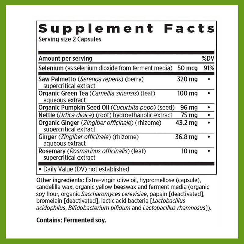 ใบเลื่อย Palmetto, รากตำแย, ไพเจัม, สังกะสี, เบต้า-ซิทเทอรอล, สารสกัดจากเมล็ดฟักทอง, สารสกัดจากรากขมิ้น, สารสกัดจากผลไม้พริกไทยดำ, ซีลีเนียมส่วนผสมหลัก