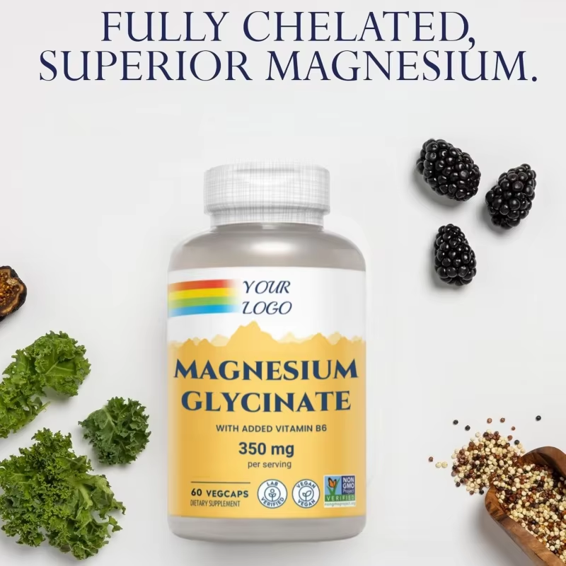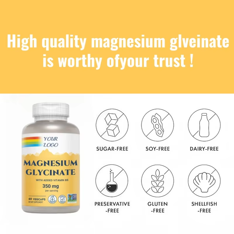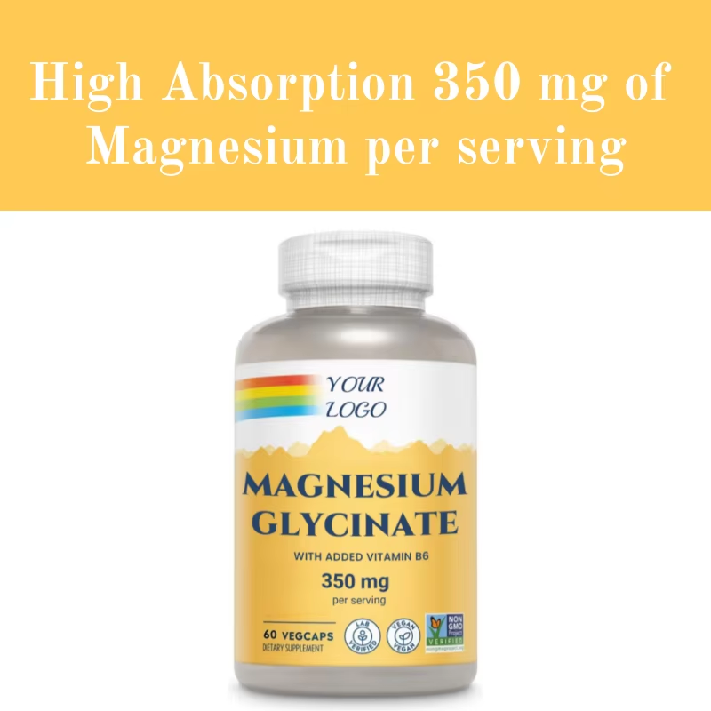 แมกนีเซียมไกลซิเนต 500 มก. วิตามินบี 6 ซิเตรต สำหรับผู้ใหญ่ ช่วยผ่อนคลายความเครียด บำรุงภูมิคุ้มกัน ช่วยการนอนหลับ และเสริมสร้างกระดูก (OEM แบรนด์ส่วนตัว)
