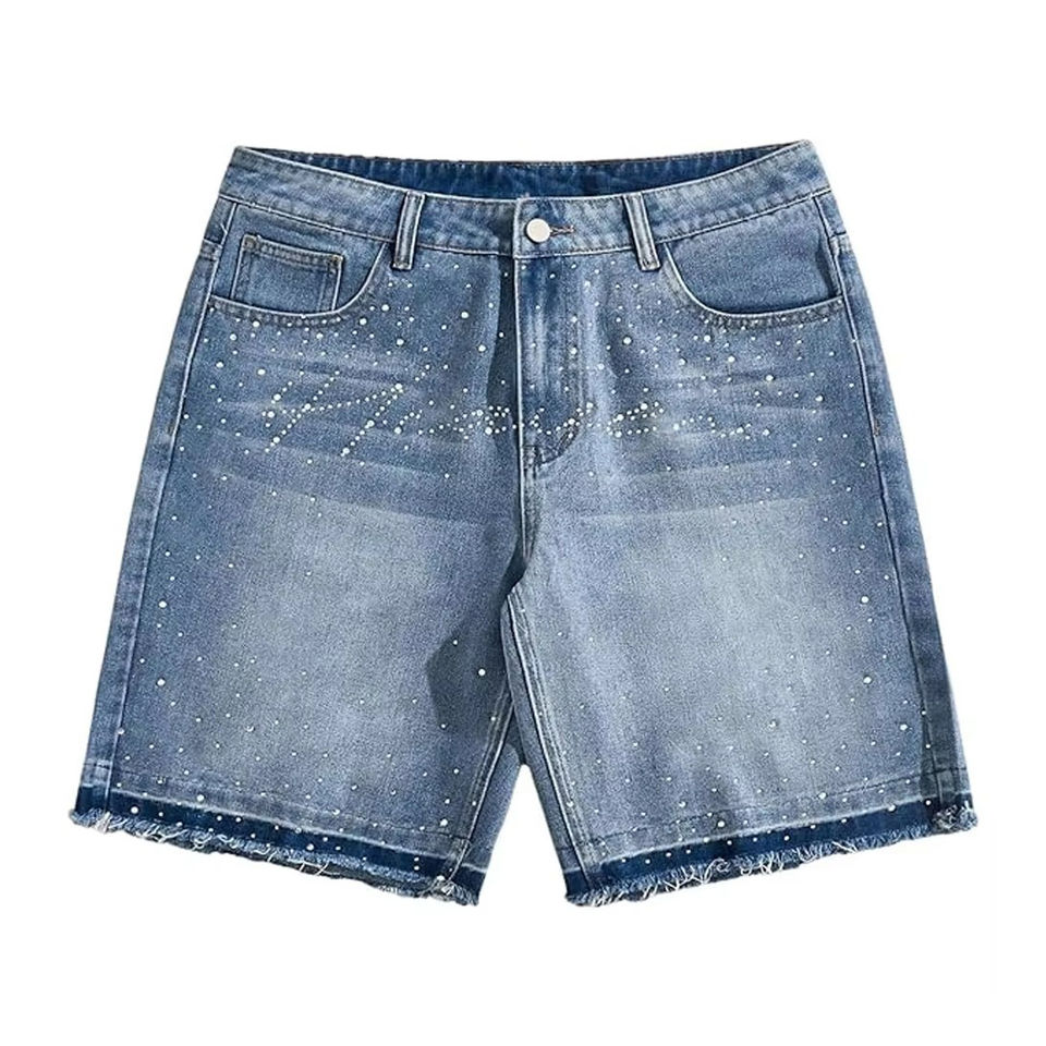 กางเกงขาสั้นผู้ชายผ้าเดนิมประดับเพชรพลอย รุ่น Oem Professional Plus Size สวมใส่สบาย แห้งเร็ว คุณภาพสูง ราคาขายส่ง สำหรับผู้ใหญ่